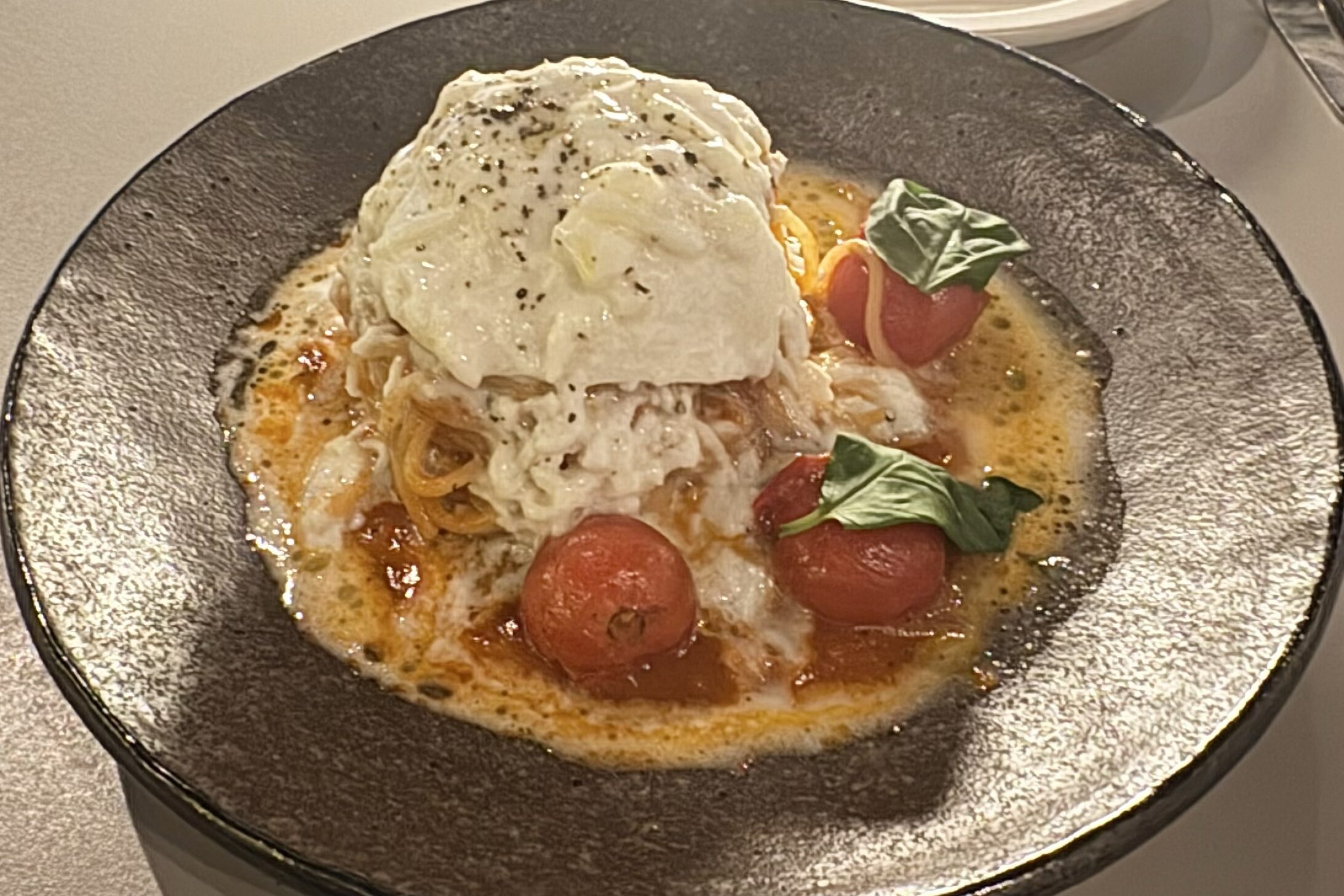 ブッラータチーズを崩してソースと混ぜ合わせるとクリーミーさが加わり、味がまろやかに変化していきます。食べるごとにチーズとトマトが馴染んでいき、最後まで飽きることなく楽しめました😋